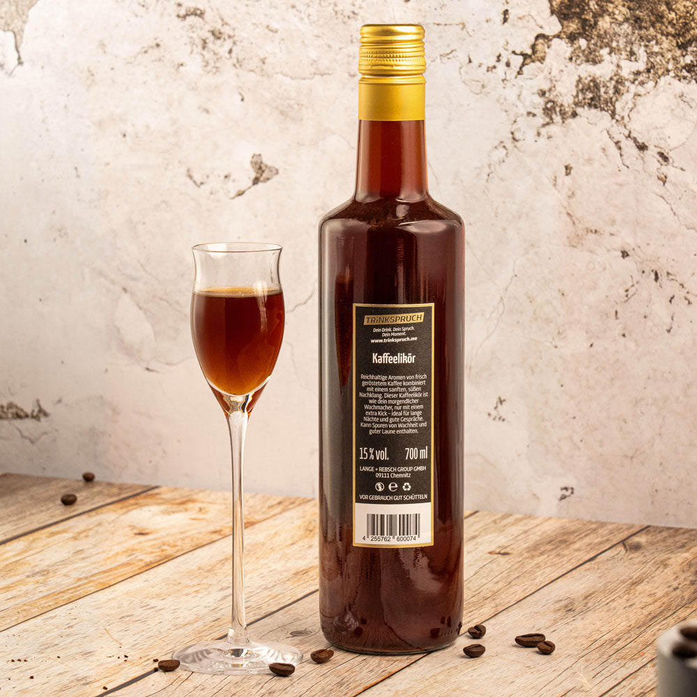 Reichhaltige Aromen von frisch geröstetem Kaffee kombiniert mit einem sanften, süßen Nachklang. Dieser Kaffeelikör ist wie dein morgendlicher Wachmacher, nur mit einem extra Kick – ideal für lange Nächte und gute Gespräche. Kann Spuren von Wachheit und guter Laune enthalten.